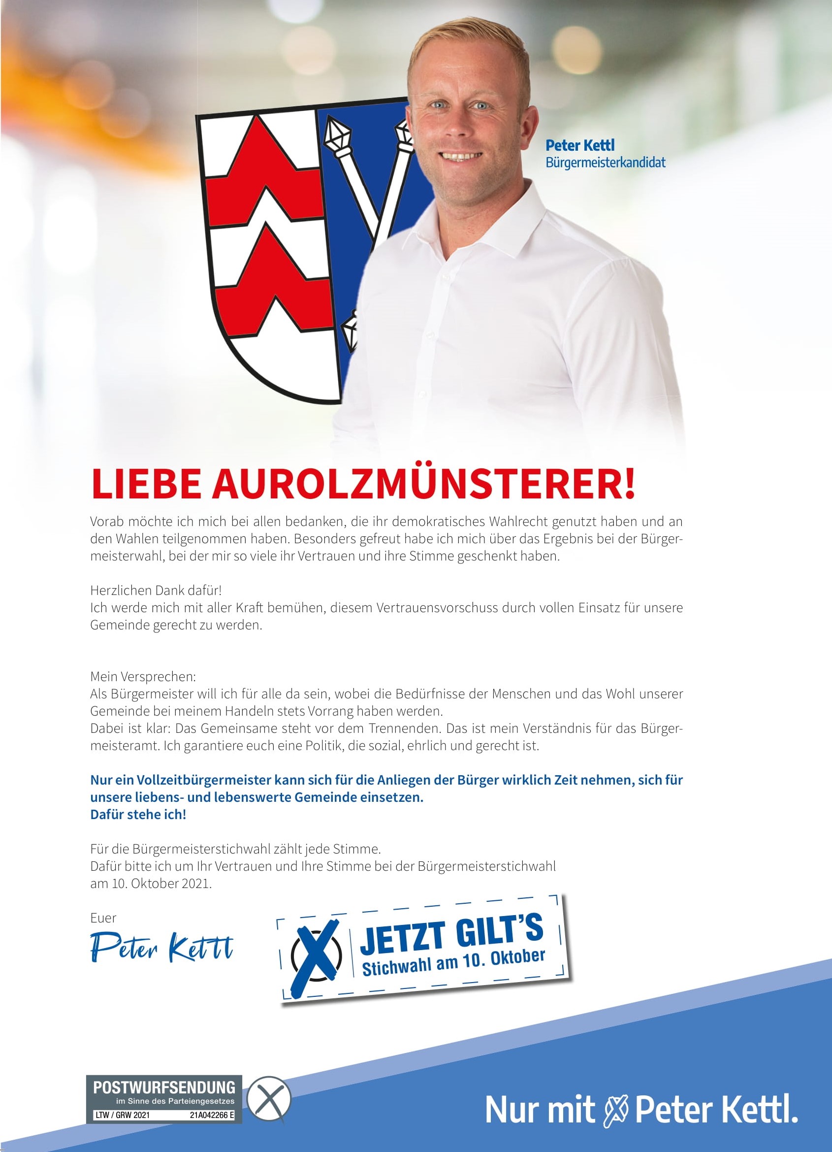 Als Bürgermeister will ich für alle da sein, wobei die Bedürfnisse der Menschen und das Wohl unserer Gemeinde bei meinem Handeln stets Vorrang haben werden.